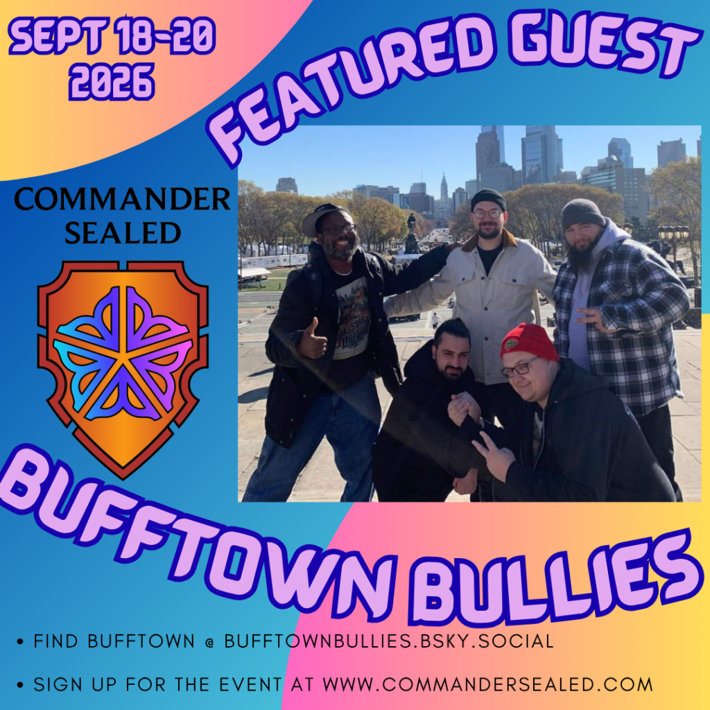 Check out all the people who you can interact with at Commander Sealed 2026! Check their links to see what organization they are fundraising for!